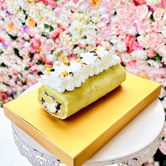 開心果味蛋糕,配合濃郁的開心果忌廉及紅桑莓果醬,口感酸甜而不膩!